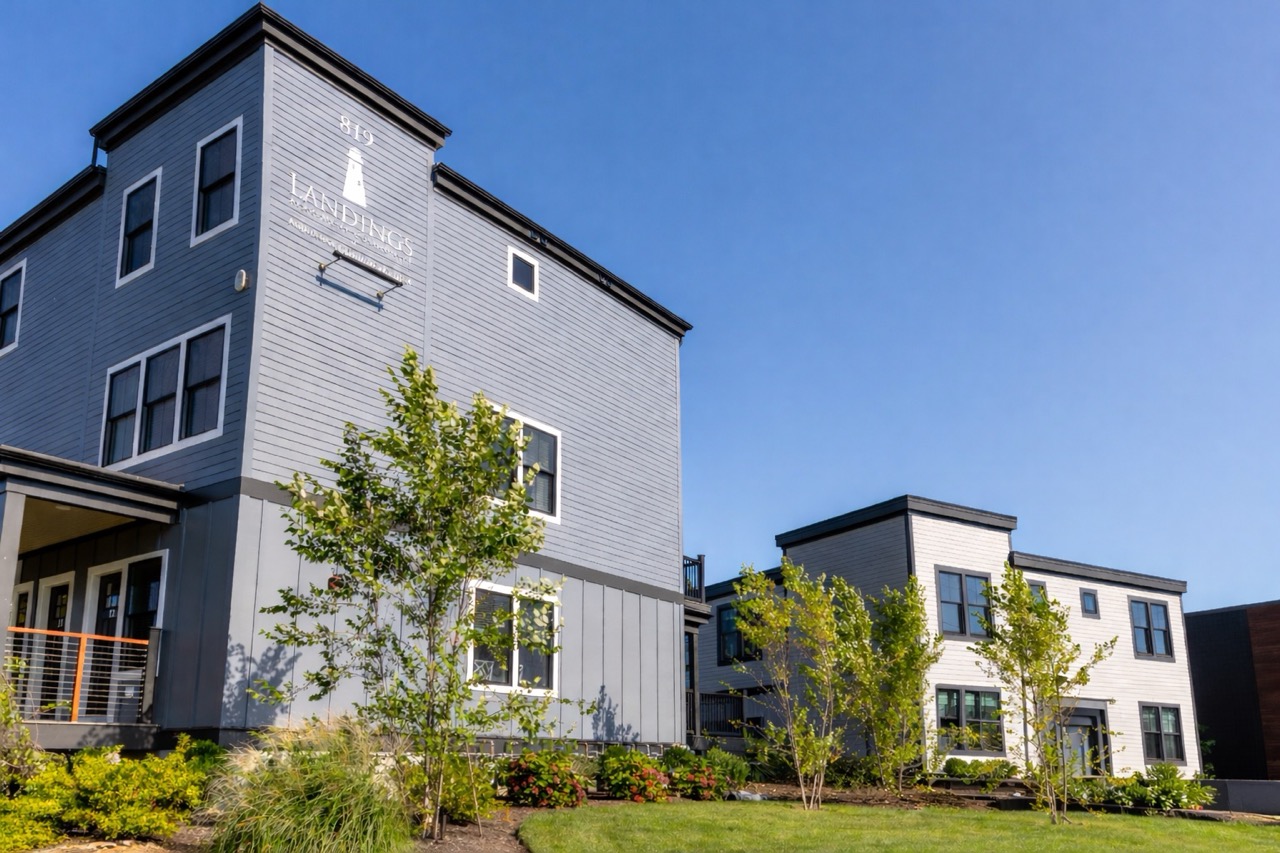 What began in 2023 as the transformation of the former Sakonnet Eye Care office is now complete with a total of 19 residences at Landings at Aquidneck Commerce Center. From the addition of a second story to the seamless exterior design that complements the surrounding buildings, this project reflects our commitment to thoughtful redevelopment and high-quality housing.